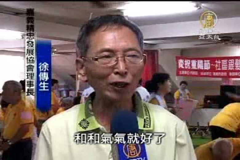 重陽節快到了,據內政部統計,到今年6月底,台灣65歲以上老人合計有247萬4千多人,占總人口比例達10.69%,老化指數達到66.72%,而這也更突顯了老人安養照顧的重要,現在請跟著我們的鏡頭,來到嘉義,看一群快樂的獨立老人,如何活出尊嚴與自信。 //asset1.ntdtv.com.tw/public/uploads/video/2010/10/09/20101009-312687.flv 白髮童心|阿公阿媽活出尊嚴快樂|新唐人|政治|財經|社會|體育|影劇|娛樂|教育|醫藥|消費|新聞|民調|藝文|科技|時事|即時新聞|亞太|節目2010-10-08 21:09:48