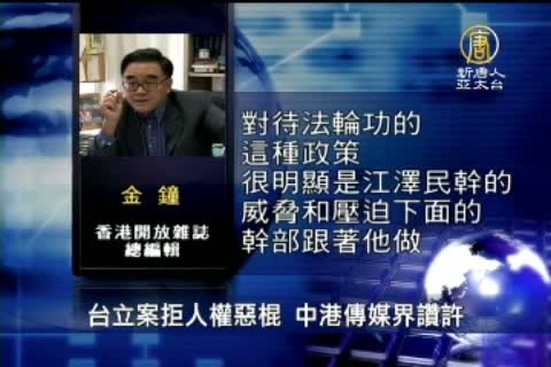 台灣立法院在上週五通過提案,要求政府禁止犯有人權重罪的中共高官和高幹入境台灣。那麼不僅台灣,熟悉兩岸問題的香港和大陸資深媒體人都認為這個議案意義重大,將對中共政權帶來重創。 //asset2.ntdtv.com.tw/public/uploads/video/2010/12/14/20101214-661895.flv 台立案拒人權惡棍|中港傳媒界讚許|立法院|人權|香港|開放雜誌總編輯|金鐘|新唐人|政治|財經|社會|體育|影劇|娛樂|教育|醫藥|消費|新聞|民調|藝文|科技|時事|即時新聞|亞太|節目2010-12-13 22:23:53