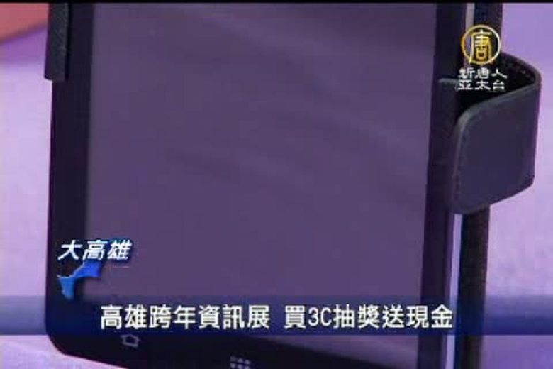 想要搶便宜的民眾,可別錯過今年最後一檔的高雄資訊展,除了有熱門的平板電腦搭配上網費率免費帶回家之外,還有新款單眼相機下殺六千元,以及首次公開亮相的小筆電,現場還有購買3C商品抽獎送現金等活動,要讓民眾買越多省越多。 //asset3.ntdtv.com.tw/public/uploads/video/2010/12/29/20101229-808750.flv 高雄跨年資訊展|買3C抽獎送現金|高雄資訊展|莊連豪|平板電腦|新唐人|政治|財經|社會|體育|影劇|娛樂|教育|醫藥|消費|新聞|民調|藝文|科技|時事|即時新聞|亞太|節目2010-12-28 22:50:25