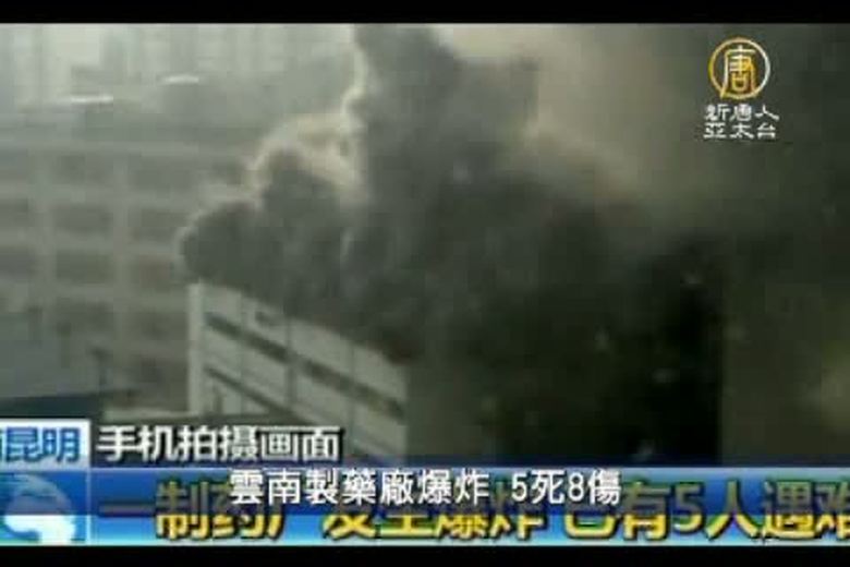 中國雲南省昆明市一家製藥廠今天早上10點發生爆炸,造成5人喪生,8人受傷。 //asset1.ntdtv.com.tw/public/uploads/video/2010/12/31/20101231-831461.flv 雲南製藥廠爆炸|5死8傷|雲南|製藥廠|爆炸|新唐人|政治|財經|社會|體育|影劇|娛樂|教育|醫藥|消費|新聞|民調|藝文|科技|時事|即時新聞|亞太|節目2010-12-30 22:18:54