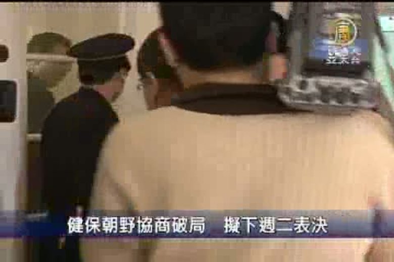 立法院朝野黨團今天(31日)協商二代健保修法,仍然沒有達成共識。國民黨政策會執行長林益世表示,衛生署目前所提的健保費基與費率都是試算版本,實際數字以立法院屆時通過修法版本為主,並堅持在下週二就開始處理法案,但民進黨團主張等1月3日召開黨團大會後再決定態度,在歲末這天,朝野協商宣告破局,預料二代健保下週二將在立院院會上演一場表決大戰。 //asset1.ntdtv.com.tw/public/uploads/video/2011/01/01/20110101-842912.flv 健保朝野協商破局|擬下週二表決|二代健保協商|立院|黨團|新唐人|政治|財經|社會|體育|影劇|娛樂|教育|醫藥|消費|新聞|民調|藝文|科技|時事|即時新聞|亞太|節目2010-12-31 22:54:09