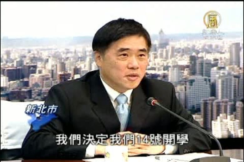 國中、小學放完寒假後,原本預定2月11日開學,但適逢星期五,會不會彈性放假,把開學日往後延呢? 教育部說,要讓地方自行決定後,新北市率先公佈,將開學日延後三天,接著台北市也跟進,至於大台中和南二都,目前都還沒決定。 //asset1.ntdtv.com.tw/public/uploads/video/2011/01/05/20110105-874131.flv 新北市宣布|2月14日開學!|新北市|開學|寒假|新唐人|政治|財經|社會|體育|影劇|娛樂|教育|醫藥|消費|新聞|民調|藝文|科技|時事|即時新聞|亞太|節目2011-01-04 21:21:56