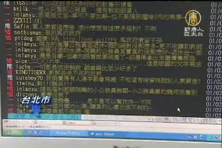 接下來看到,銓敘部去年底通知退休公教人員,恢復18%優惠存款額度,平均增加30~50萬,一年增加8萬多的利息,消息一傳出,馬上引起網友及民眾撻伐,勞團也認為這是圖利少數人,甚至有退休教師,投書平面媒體,認為不公平,自願放棄。 //asset2.ntdtv.com.tw/public/uploads/video/2011/01/05/20110105-875164.flv 18%引爭議|退休師也拒優存|18%|優惠存款額度|退休|公教人員|台北|新唐人|政治|財經|社會|體育|影劇|娛樂|教育|醫藥|消費|新聞|民調|藝文|科技|時事|即時新聞|亞太|節目2011-01-04 21:05:53