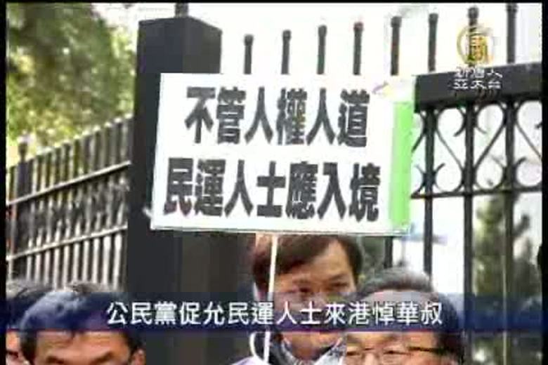 支聯會主席司徒華辭世後,多位海外民運人士希望來港出席喪禮。公民黨星期四到政府總部請願,要求當局基於人道理由,允許民運人士來港。 //asset3.ntdtv.com.tw/public/uploads/video/2011/01/09/20110109-900456.flv 公民黨促允民運人士來港悼華叔|香港|支聯會|司徒華|病逝|六四|民主|新唐人|政治|財經|社會|體育|影劇|娛樂|教育|醫藥|消費|新聞|民調|藝文|科技|時事|即時新聞|亞太|節目2011-01-08 21:26:25