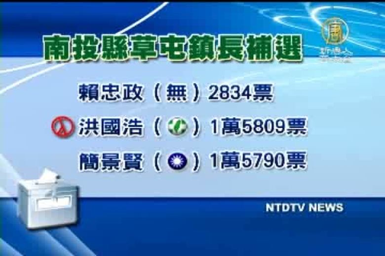 為您插播一則最新消息。南投縣草屯鎮長補選結果今晚出爐,由民進黨候選人洪國浩,小贏19票險勝。據南投縣選舉委員會的統計,南投縣第16屆草屯鎮長補選,4名候選人得票數分別為: 賴忠政(無)2834票、洪國浩( 民主進步黨)1萬5809票、簡景賢(中國國民黨)1萬5790票。 //asset2.ntdtv.com.tw/public/uploads/video/2011/01/09/20110109-901304.flv 贏19票|草屯鎮長補選民進黨勝|新唐人|政治|財經|社會|體育|影劇|娛樂|教育|醫藥|消費|新聞|民調|藝文|科技|時事|即時新聞|亞太|節目2011-01-08 21:09:17