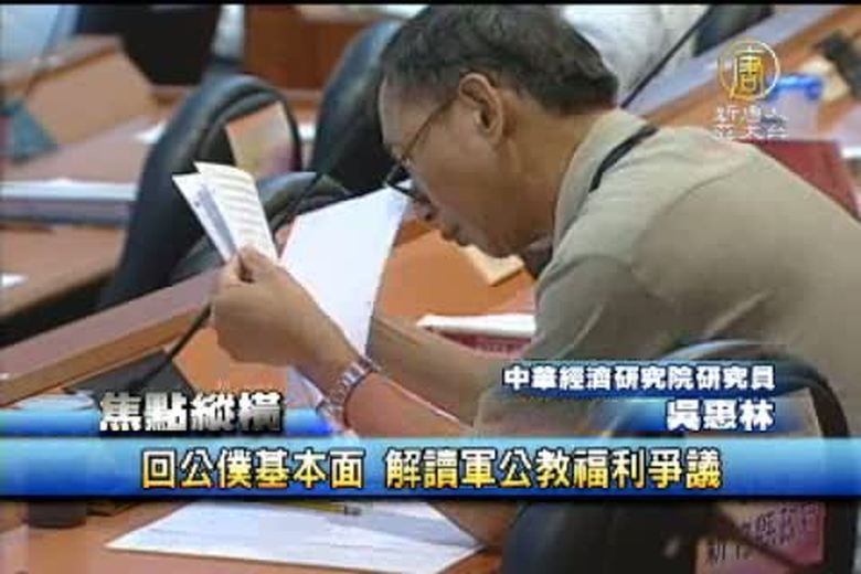 從星期一,馬總統拋出公務人員加薪的議題,到今天的十八趴優存利率排富條款,軍公教人員的福利,不斷引發爭議,怎麼看待馬政府對公務人員的福利政策?我們今天的焦點縱橫,為您探討。 //asset3.ntdtv.com.tw/public/uploads/video/2011/01/13/20110113-927350.flv 回公僕基本面|解讀軍公教福利爭議|軍公教福利|中華經濟研究院研究員|吳惠林|新唐人|政治|財經|社會|體育|影劇|娛樂|教育|醫藥|消費|新聞|民調|藝文|科技|時事|即時新聞|亞太|節目2011-01-12 21:11:04