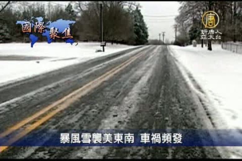 鏡頭轉到美國,以往總是可以看到溫暖陽光的美東南各州,目前從路易斯安那州到北卡羅來納州,都遭到厚厚的冰雪覆蓋,造成交通事故頻頻。據統計,在最近幾天,冰雪導致的交通事故已經造成了至少8人死亡。 //asset2.ntdtv.com.tw/public/uploads/video/2011/01/13/20110113-926189.flv 暴風雪襲美東南|車禍頻發|美國東南|暴風雪|交通亂|新唐人|政治|財經|社會|體育|影劇|娛樂|教育|醫藥|消費|新聞|民調|藝文|科技|時事|即時新聞|亞太|節目2011-01-12 21:03:53
