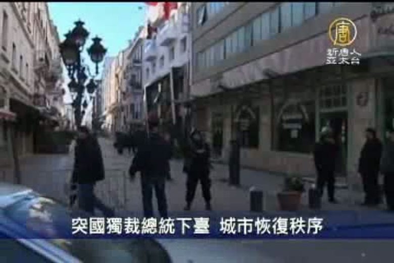 突尼西亞獨裁總統 本‧阿里,在大規模民眾抗議下,被迫下臺逃亡沙特後,突尼西亞憲法委員會15日宣佈,根據該國憲法,議會議長將擔任臨時總統,而總統選舉將在60天內舉行。而在當天,首都突尼西亞市也開始恢復秩序。 //asset3.ntdtv.com.tw/public/uploads/video/2011/01/17/20110117-951108.flv 突國獨裁總統下臺|城市恢復秩序|突尼西亞|獨裁總統|本‧阿里|下臺|新唐人|政治|財經|社會|體育|影劇|娛樂|教育|醫藥|消費|新聞|民調|藝文|科技|時事|即時新聞|亞太|節目2011-01-16 21:25:13