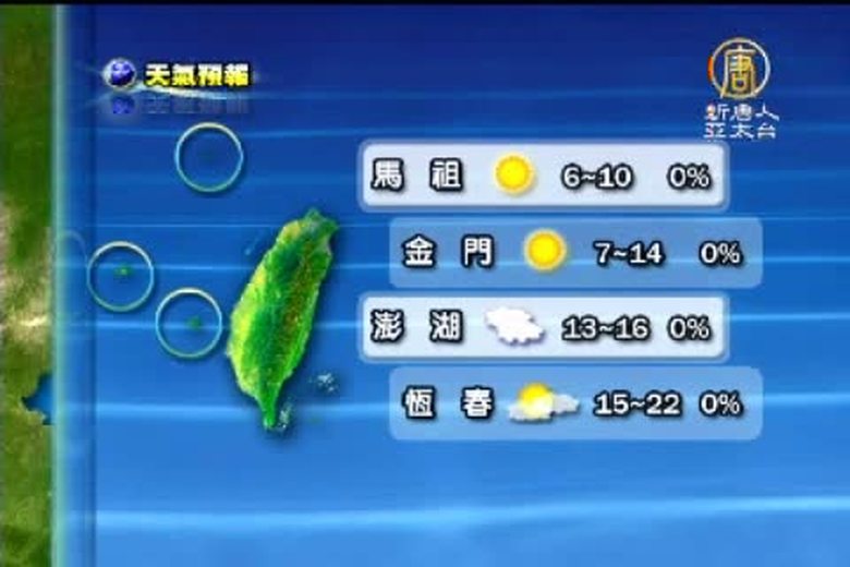 以下帶您關心1月17號星期一,全台各地以及世界各主要城市的天氣預報 。 //asset1.ntdtv.com.tw/public/uploads/video/2011/01/17/20110117-951111.flv 1月17日天氣預報|新唐人|政治|財經|社會|體育|影劇|娛樂|教育|醫藥|消費|新聞|民調|藝文|科技|時事|即時新聞|亞太|節目2011-01-16 21:29:21
