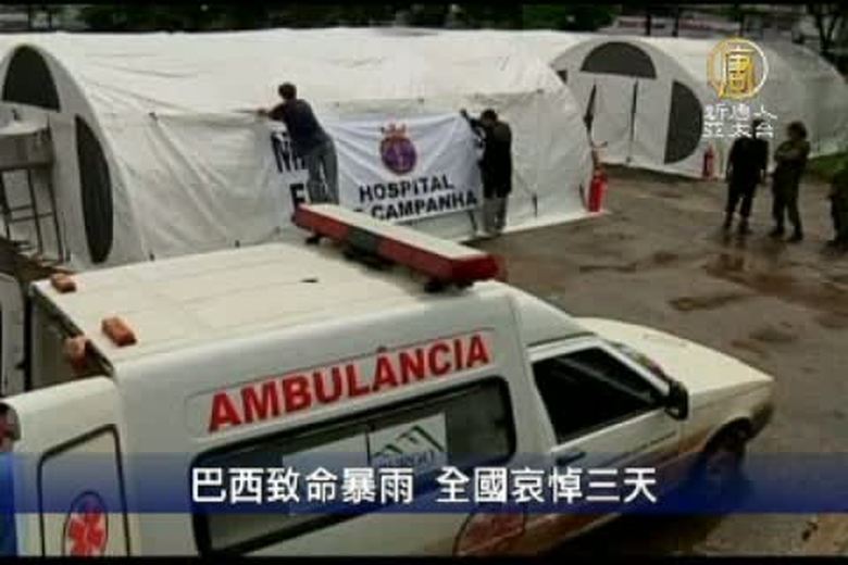 星期六(15號),巴西東南部暴雨引發的洪水和土石流,已經造成至少591人遇難,救援工作受到降雨影響,進度緩慢,預估實際遇難人數還會增加。當天,總統羅塞夫宣佈全國哀悼3天。 //asset2.ntdtv.com.tw/public/uploads/video/2011/01/17/20110117-951107.flv 巴西致命暴雨|全國哀悼三天|巴西|水災|暴雨|瘟疫|疫苗|新唐人|政治|財經|社會|體育|影劇|娛樂|教育|醫藥|消費|新聞|民調|藝文|科技|時事|即時新聞|亞太|節目2011-01-16 21:23:21