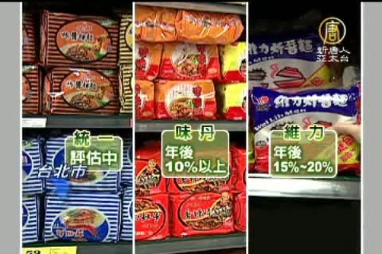 要過年了,那麼大家忙著採買年貨之際,恐怕也得先把常吃的泡麵先買起來,因為泡麵要漲價了!由於麵粉、沙拉油、馬鈴薯粉…等等原物料一直漲,加上最近國際天災不斷,幾個大品牌,統一、味丹和維力都在評估年後漲價,漲幅大約有10~20%! //asset1.ntdtv.com.tw/public/uploads/video/2011/01/19/20110119-961031.flv 原物料漲不停|泡麵年後上漲2-3成|原物料|泡麵|過年|上漲|台北|新唐人|政治|財經|社會|體育|影劇|娛樂|教育|醫藥|消費|新聞|民調|藝文|科技|時事|即時新聞|亞太|節目2011-01-18 21:47:41