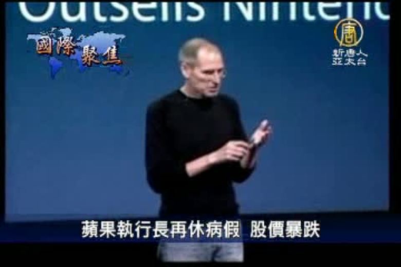 蘋果公司17號公佈,公司執行長賈伯斯將因胰腺癌休假,這是賈伯斯兩年來第二次休病假,當天蘋果股價也因此暴跌將近10%。 //asset3.ntdtv.com.tw/public/uploads/video/2011/01/19/20110119-961048.flv 蘋果執行長再休病假|股價暴跌|生病|賈伯斯|蘋果|電腦|新唐人|政治|財經|社會|體育|影劇|娛樂|教育|醫藥|消費|新聞|民調|藝文|科技|時事|即時新聞|亞太|節目2011-01-18 21:35:45