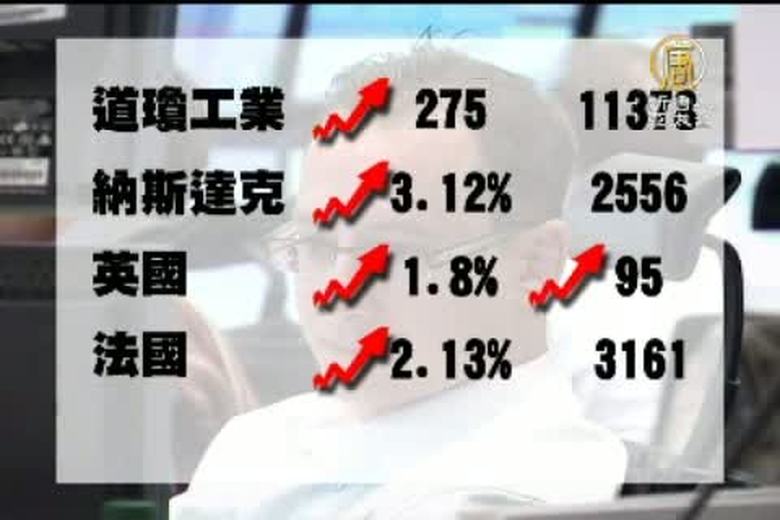 來關心國際重要財經訊息。法國和德國星期天(9號)承諾將在三個星期內,宣布解決歐元債務危機的新措施。這項消息發揮作用,歐洲股市星期一應聲大漲,美股開盤也是上揚的局面。 //asset1.ntdtv.com.tw/public/uploads/video/2011/10/12/20111012-4942160.flv 歐債|股市|銀行|歐洲2011-10-11 21:38:02