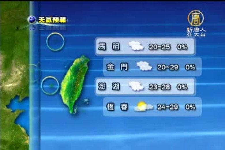 以下帶您關心10月21號星期五,全臺各地以及世界各主要城市的天氣預報。 //asset3.ntdtv.com.tw/public/uploads/video/2011/10/21/20111021-5084854.flv 2011-10-20 21:58:32