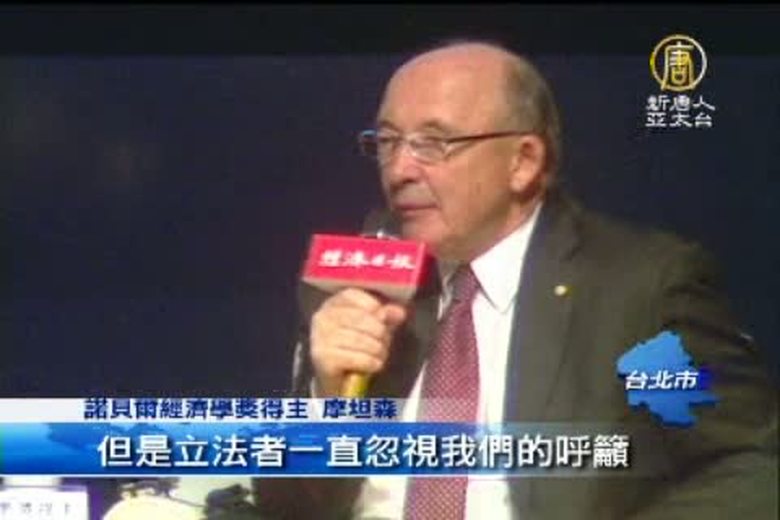 2010年諾貝爾經濟學獎得主、摩坦森受邀來台參加論壇,第一天談論的主題就是失業問題,他在發表說時坦言,現在貧富差距的問題越來越嚴重,過去因為政府不夠重視,才會發生群眾佔領華爾街的抗議活動。 //asset2.ntdtv.com.tw/public/uploads/video/2011/10/21/20111021-5084847.flv 諾貝爾經濟學獎|摩坦森|失業|佔領華爾街|貧富差距|台北2011-10-20 21:48:35