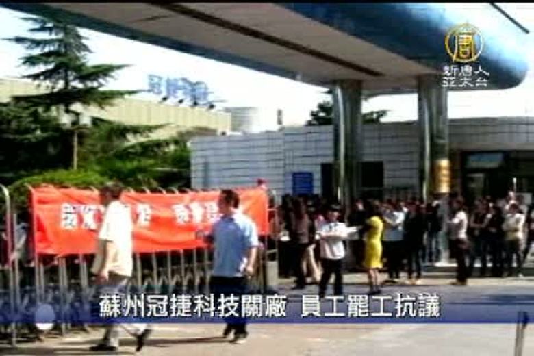 江蘇省蘇州冠捷科技公司由於傳出關廠搬遷,工廠員工近日在公司門外拉布條罷工抗議,要求公司按工作年資發放賠償金;由於廠方沒有給予答覆,罷工仍在持續;另外,溫州老闆跑路近日也引發工人堵路討薪。 //asset1.ntdtv.com.tw/public/uploads/video/2011/10/21/20111021-5084494.flv 冠捷科技公司|罷工|關廠|抗議|蘇州2011-10-20 21:26:03