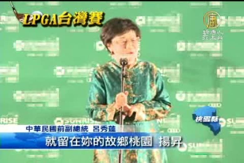 鏡頭轉回台灣,台灣史上第一場世界級的LPGA台灣巡迴賽今天(20)正式開打了, 世界球后曾雅妮回到故鄉打球,台灣球迷全力相挺,而曾雅妮也不負眾望,今天在最後第18洞時即時抓下1個博蒂(Birdie),以低於標準桿4桿的總桿68桿成績, 與日本好手宮里藍暫時並列第一。 //asset2.ntdtv.com.tw/public/uploads/video/2011/10/21/20111021-5087186.flv LPGA|揚昇|曾雅妮|高爾夫球|桃園2011-10-21 00:39:02