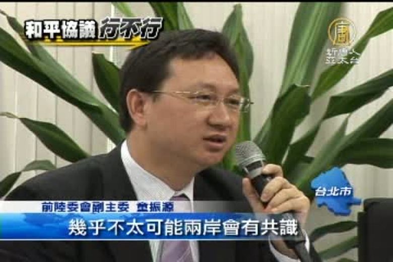 根據平面媒體最新民調和未來事件交易所的預測,在馬總統上週提出將推動兩岸簽訂和平協議後,馬吳配和英嘉配的支持率,差距已經縮小到6%。新台灣國策智庫學者今天(25日)發表新書,談,兩岸和平協議,成了與會學者和媒體聚焦的話題。 //asset1.ntdtv.com.tw/public/uploads/video/2011/10/26/20111026-5164008.flv 兩岸和平協議|吳釗燮|童振源|羅致政|台北2011-10-25 21:15:15