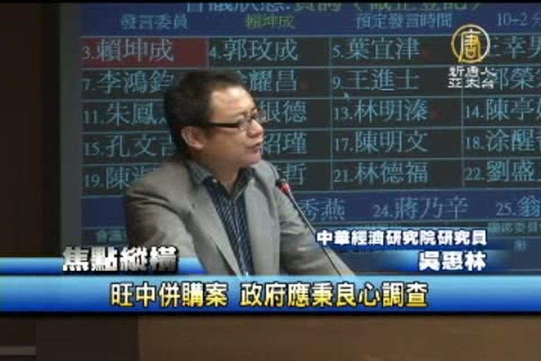 旺中寬頻,併購十一家有線電視系統案,昨天在立法院交通委員會中,受到學者與立委的強烈質疑,擔憂併購案會造就所謂的「媒體酷斯拉」,壟斷言論市場。亞太新聞,持續為您鎖定這起亞洲近五年來最大的媒體併購案,今天的焦點縱橫,我們為您深入探討,究竟媒體與一般物財是不是可以等同視之?那麼如果把這個併購案,單純的看成只是購買一個媒體平台,對於媒體市場來說,將會有什麼樣的衝擊?我們在稍早之前的採訪。 //asset3.ntdtv.com.tw/public/uploads/video/2011/11/02/20111102-5283299.flv 旺中併購案|言論|自由市場2011-11-01 21:06:33