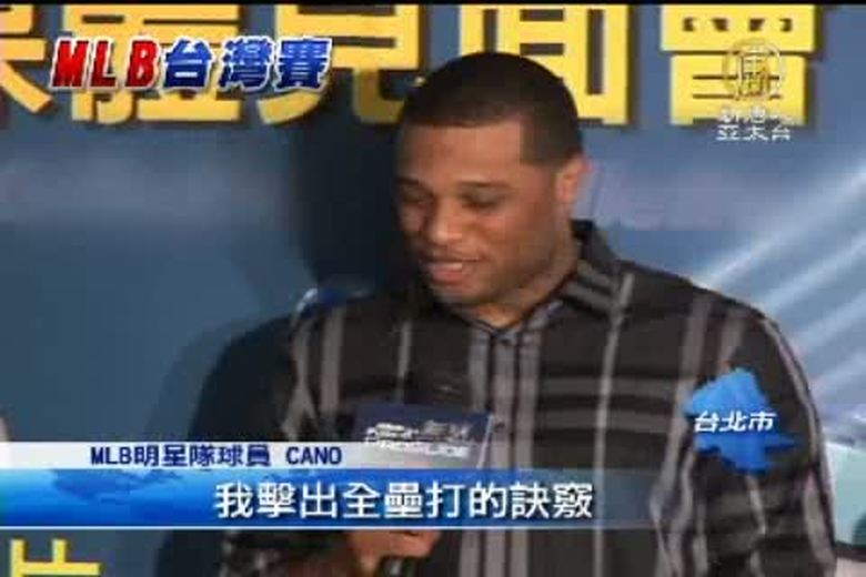 這次來台參加明星賽的洋基隊球星Robinson Cano,今天(1日)和台灣巨炮陳金鋒出席活動,他說,在台灣待的這三天,球迷、媒體的熱情,讓他笑稱,現在在台灣,自己應該有比王建民更受歡迎吧。首度和台灣巨砲陳金鋒見面,看到陳金鋒和藝人阿KEN代言拍攝的廣告,讓Cano也心動,不排斥未來有機會一起合作。 //asset3.ntdtv.com.tw/public/uploads/video/2011/11/02/20111102-5278841.flv Robinson|Cano|MLB|陳金鋒|阿Ken|台北2011-11-01 21:09:42