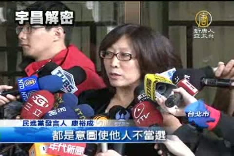 針對宇昌案文件時間錯置,民進黨發言人康裕成與律師今天以「意圖使人不當選」,控告三位國民黨立委、經建會主委劉憶如、與行政院長吳敦義的妻子蔡令怡。 //asset1.ntdtv.com.tw/public/uploads/video/2011/12/15/20111215-5959114.flv 台北地檢署|控告|宇昌2011-12-14 21:11:47