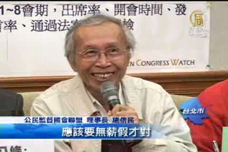 立法院進入休會,不過公民監督國會聯盟指出,憲法規定,立院會期到12月底才結束,立委卻提早休假拼選舉。他們要求放「有薪假」的立委,應該把多領的薪水捐出來,作公益。 //asset1.ntdtv.com.tw/public/uploads/video/2011/12/16/20111216-5978213.flv 公督盟|立委|會期2011-12-15 22:13:56