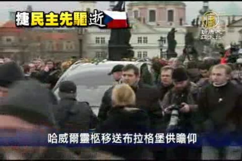 星期三, 捷克前總統哈威爾的靈柩從聖安娜教堂移送至布拉格堡。 成千上萬的民眾在布拉格街頭默默的跟隨移靈隊伍,向他們的前總統致哀。哈威爾將會持續供人瞻仰到星期五正式舉行喪禮為止。 //asset1.ntdtv.com.tw/public/uploads/video/2011/12/23/20111223-6095061.flv 哈威爾|布拉格堡|捷克|國殤日2011-12-22 21:39:10