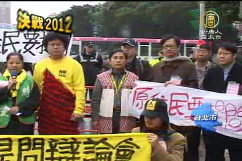 大選逼近, 雖然寒流來襲,不過民間的活動仍舊持續升溫,今天(22日)上午在總統府凱道,就接連有三場活動,針對環保、原民議題,要候選人實問實答。 //asset1.ntdtv.com.tw/public/uploads/video/2011/12/23/20111223-6099784.flv 總統府|文化界|綠黨|台聯2011-12-22 21:26:46