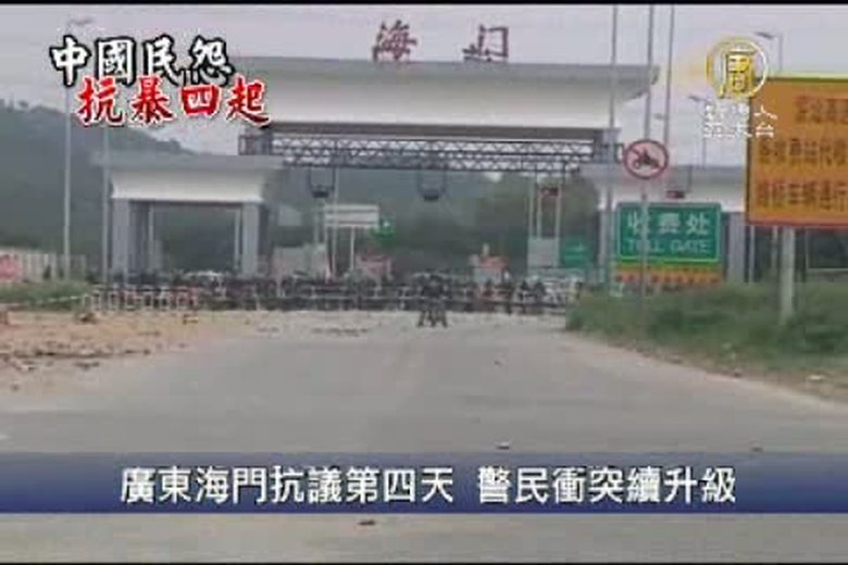 廣東汕頭海門鎮民眾抗議當地興建電廠的行動已進入第四天,星期五(23日)仍在持續,香港媒體報導,近萬名海門抗議民眾與武警爆發多起激烈衝突,警察發射數回的催淚彈,驅離其中數百抗議群眾。 //asset3.ntdtv.com.tw/public/uploads/video/2011/12/24/20111224-6114988.flv 海門鎮|廣東|汕頭|維權|中國2011-12-23 21:04:46