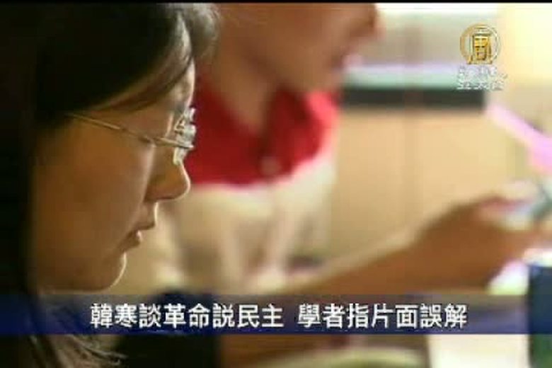 中國頗具影響力的80後作家韓寒,日前發表兩篇博客文章《談革命》、《說民主》,在網民中和知識界引發熱烈的討論與爭議,學者大多認為韓寒對「革命」、「自由」與「民主」解讀錯誤或是片面,反映了一些知識份子在中共體制壓抑下,對現實和未來的無奈與迷茫。 //asset3.ntdtv.com.tw/public/uploads/video/2011/12/29/20111229-6187408.flv 韓寒|網路|民主|革命|中國2011-12-28 21:35:33