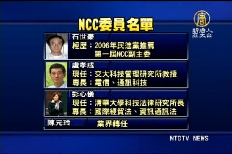 行政院長陳沖昨(30)晚,提出下屆國家通訊傳播委員會NCC的委員名單。包括石世豪、虞孝成、陳元玲、彭心儀四人。其中被提名主委的石世豪,還曾經擔任第一屆NCC的副主委。對於這項提名,立委說,希望被提名的NCC委員有足夠的抗壓性,處理媒體併購的議題。 //asset3.ntdtv.com.tw/public/uploads/video/2012/05/02/20120502-8173671.flv 旺中併購案|NCC|跨媒體壟斷2012-05-01 21:25:59