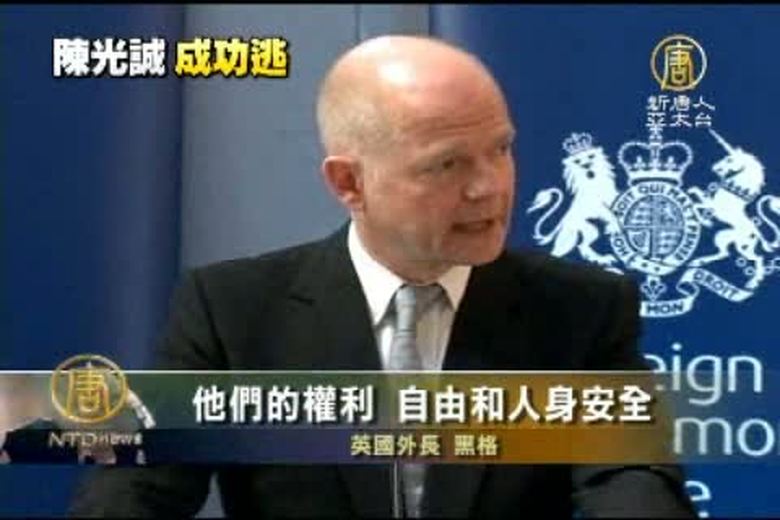 競選連任的美國總統歐巴馬,面對陳光誠事件,態度保守,接著來看到,英國外長黑格,星期一則是敦促中共停止對異議人士的鎮壓,歐盟駐華代表團也在當天發表聲明,呼籲中共對維權人士陳光誠事件保持「最大限度的克制」,不要搔擾陳光誠的家人或者是其他任何與陳光誠有關的人。 //asset3.ntdtv.com.tw/public/uploads/video/2012/05/02/20120502-8172389.flv 盲人律師|陳光誠|英國|外長|人權2012-05-01 21:07:16