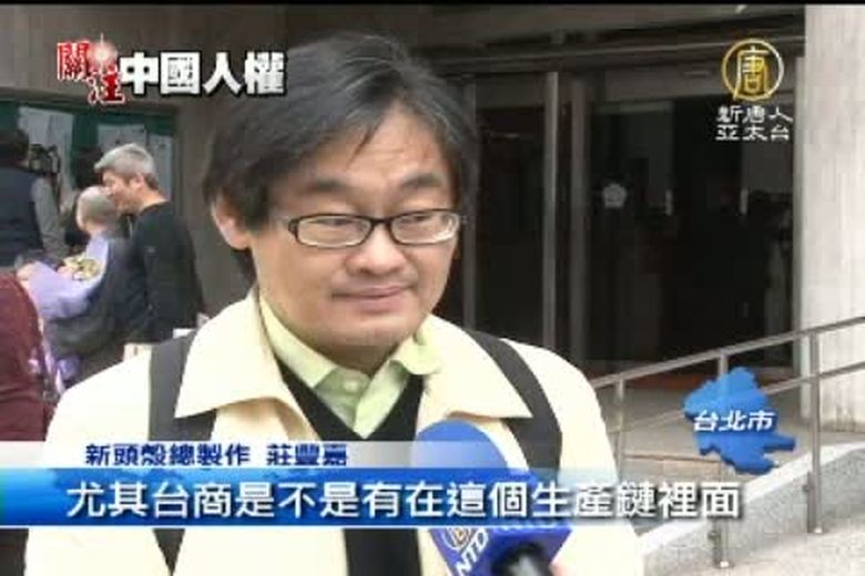 馬三家勞教所的血淚密函曝光,國際持續議論中國勞教所中的迫害惡況。台灣多個公民團體領袖,今天表示譴責與憤怒,他們說,希望自由國家的政府與媒體都能發聲,反對迫害,抵制勞教所黑心產品。 //asset3.ntdtv.com.tw/public/uploads/video/2012/12/29/20121229-12260030.mp4 台灣要聞|馬三家|勞教所|禮品|法輪功2012-12-28 21:07:19