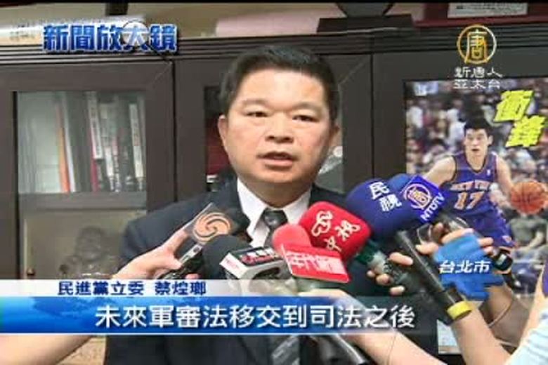總統府將在明天(週三)公布「軍事審判法部分條文修正案」,根據軍方統計,首波將有兩百多名軍事犯,「連人帶卷」移監到矯正署,對司法體系來說是項考驗,司法院長賴浩敏說,普通法的審判難度不會低於軍事審判,相信法官很快就能適應。 //asset2.ntdtv.com.tw/public/uploads/video/2013/08/14/20130814-16313361.mp4 台灣要聞|軍審法|修正案|軍事犯|矯正署|審判2013-08-13 21:10:52