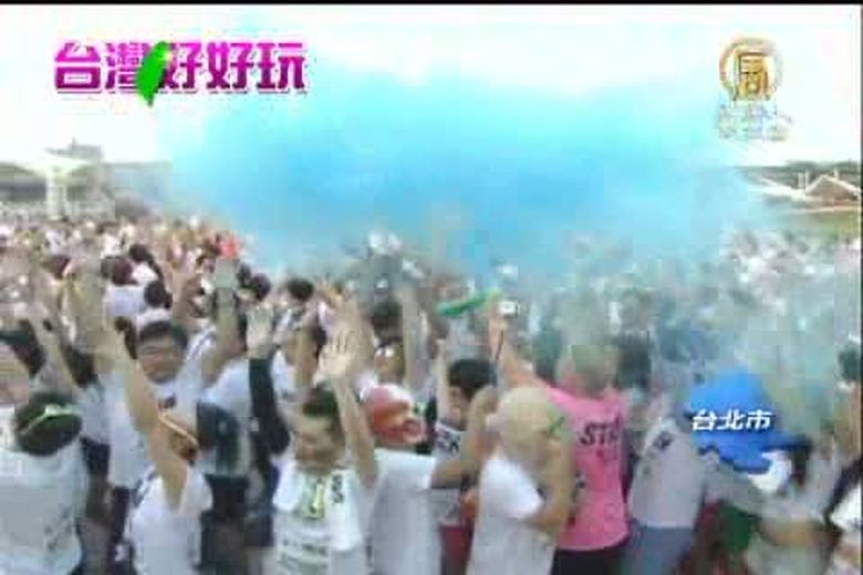 今天(18日)早上在台北大佳河濱公園,舉辦了全台灣第一場彩色路跑活動,吸引了超過1萬2千人參與,用玉米粉跟食用色素調製而成的彩色顏料,瀰漫整個現場,民眾也用各種造型,像是假髮跟面具引人注目,現場就像是一場大型的嘉年華派對。 //asset1.ntdtv.com.tw/public/uploads/video/2013/08/19/20130819-16432421.mp4 台灣要聞|彩色路跑|大佳河濱公園|台北2013-08-18 21:07:05