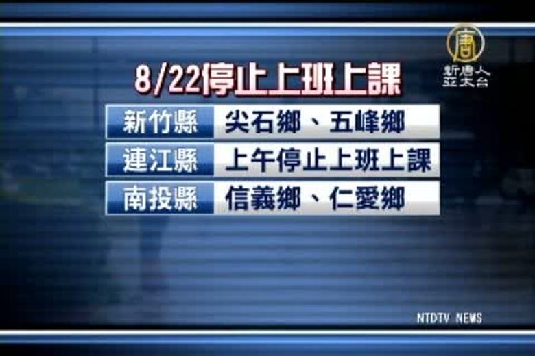 為您整理明天8月22日星期四已經宣布確定停班停課的資訊。 已經宣布不上班不上課的縣市地區有:新竹縣尖石鄉、五峰鄉 。連江縣目前只有上午是不上班不上課。南投縣信義鄉、仁愛鄉不上班不課。那麼宣布不上課,但是要上班的縣市地區有:苗栗縣南庄鄉、獅潭鄉、泰安鄉。 //asset3.ntdtv.com.tw/public/uploads/video/2013/08/22/20130822-16502130.mp4 台灣要聞|停班停課2013-08-21 21:57:03