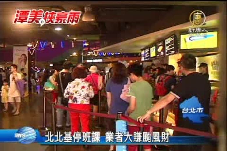今天北北基不上班不上課,不過上午風雨不算大,因此外出吃早午餐的民眾,把店內擠得滿滿,人潮比平日多兩到三成。最明顯就是電影院了,有將近九成的客人,都是家長帶著小孩來看電影,幾乎是等於多了半天的親子假。 //asset2.ntdtv.com.tw/public/uploads/video/2013/08/22/20130822-16499538.mp4 台灣要聞|停班停課|風雨|電影院|颱風假|潭美2013-08-21 21:43:16