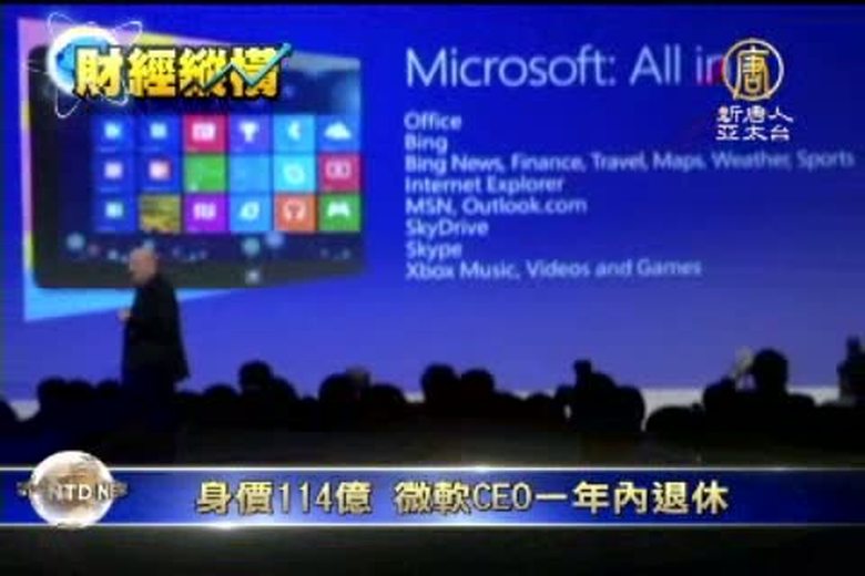 來看到國際重要的財經焦點。微軟周五表示,57歲的CEO史蒂夫鮑爾默已決定在未來12個月內退休。一旦選定了新的CEO,鮑爾默就會離開微軟。目前,微軟已經成立了包括比爾蓋茨在內的特別委員會來挑選新的CEO。 //asset3.ntdtv.com.tw/public/uploads/video/2013/08/25/20130825-16578579.mp4 財經縱橫|微軟|CEO|退休|股票|股價2013-08-24 21:17:00