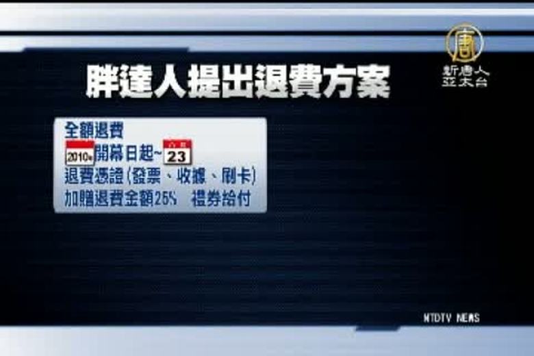 胖達人麵包添加人工香精事件,台北市消保官今天(26日)和業者協商退費機制,胖達人同意全額退費,時間點從開店日起算,全台各分店都受理,不過,台北市政府對於胖達人並沒有依消保法第51條規定,支付三倍以下懲罰賠償金表示不滿,而且表示不排除與消費者團體共同進行訴訟,引發業者反彈。因此今天的協議,雖然提出了退費方案,雙方卻是不歡而散。 //asset3.ntdtv.com.tw/public/uploads/video/2013/08/27/20130827-16602917.mp4 台灣要聞|胖達人|天然香精|消保官|食安風暴2013-08-26 21:05:31