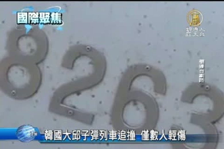 韓國今天也發生火車意外,一輛開往首爾的子彈列車,由韓國東大邱站出發,在經過大邱站時,與一樣是開往首爾的「無窮花」 號列車發生追撞並導致脫軌,所幸這場意外事故無人死亡,只有造成幾個人輕傷。 //asset1.ntdtv.com.tw/public/uploads/video/2013/09/01/20130901-16749197.mp4 國際聚焦|韓國|高速列車|脫軌2013-08-31 21:11:01