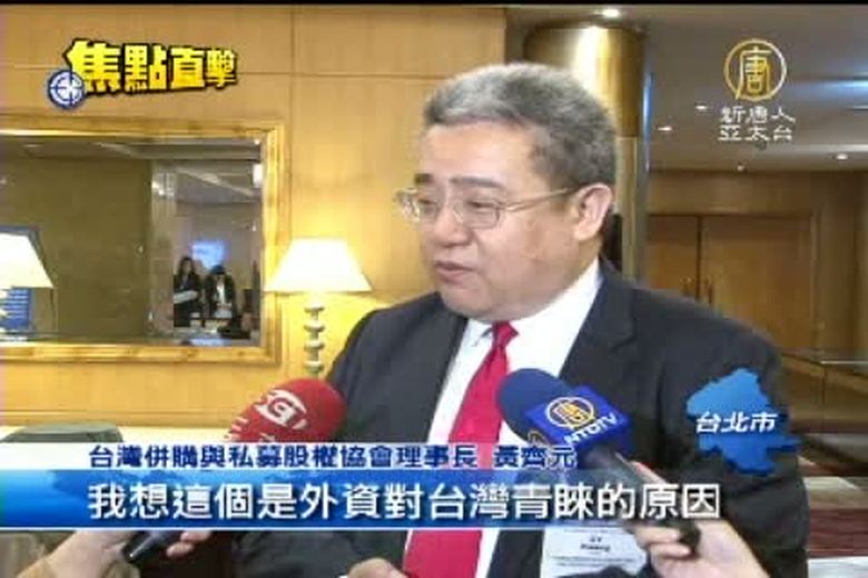 台灣併購與私募股權協會理事長黃齊元今天出席論壇時表示,自從私募基金KKR購併國巨失敗後,外資私募基金已3年沒注意台灣,但隨著相關法規可望鬆綁,他認為相較於陸企,台灣的企業管理好,風險低,外資會開始對台灣有信心,縱觀各種時空環境,台灣會不會得到更多的機會與資源?今天的焦點縱橫,為您解析。 //asset1.ntdtv.com.tw/public/uploads/video/2013/09/04/20130904-16801488.mp4 經濟焦點|2013私募基金|台灣論壇2013-09-03 21:23:15