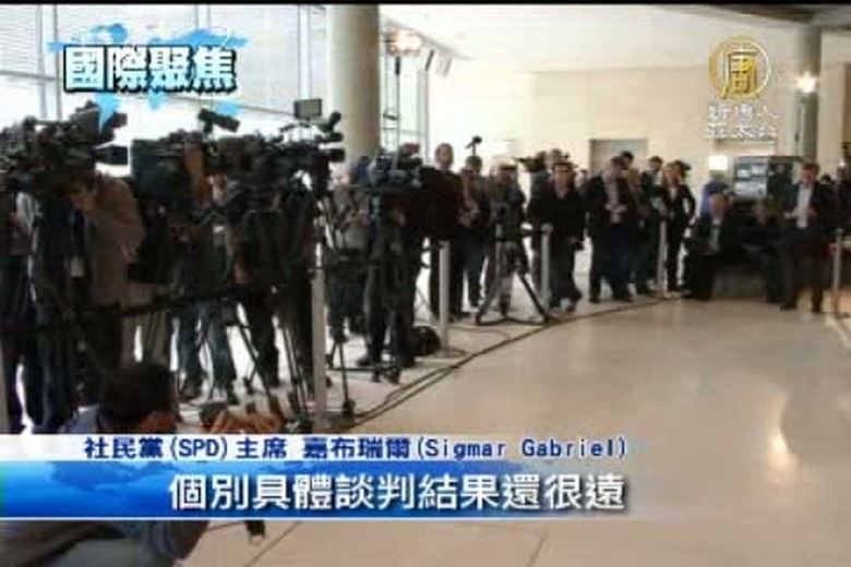 德國總理梅克爾領導的基督教民主黨和巴伐利亞姊妹黨基督教社會聯盟,週四(17號)終於在第3輪預備會談中,同中左派社會民主黨達成了共識,雙方將啟動正式會談,協商組建一個「大聯合」政府。 //asset1.ntdtv.com.tw/public/uploads/video/2013/10/19/20131019-17815025.mp4 國際聚焦|梅克爾|德國|聯合政府|CDU|CSU|SPD2013-10-18 21:35:37