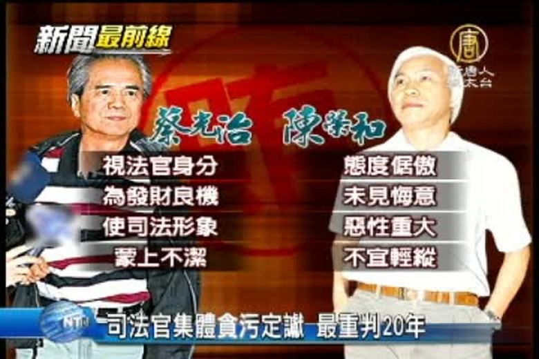 引發九月政爭的源頭,司法官集體貪污案,昨天(17日)判決定讞,高院法官蔡光治判得最重20年,而導致特偵組監聽柯建銘的陳榮和法官,則判刑18年,最高法院痛批陳榮和等人惡性重大,將法官身分視為發財良機,使司法形象蒙上不潔。 //asset1.ntdtv.com.tw/public/uploads/video/2013/10/19/20131019-17815038.mp4 台灣要聞|司法官|集體貪污|蔡光治|陳榮和|法官2013-10-18 21:13:55