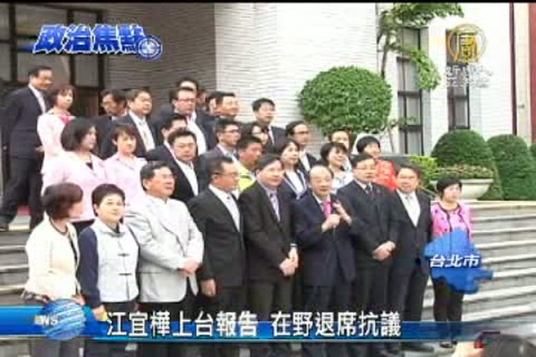 來關心今天立法院的焦點。 民進黨倒閣失敗,決定不再杯葛江宜樺施政報告,不過黨團立委,全體退席,在議場外,要求江揆下台以謝國人。 //asset2.ntdtv.com.tw/public/uploads/video/2013/10/19/20131019-17815019.mp4 台灣要聞|江宜樺|柯建銘|立法院|民進黨|施政報告2013-10-18 21:03:36