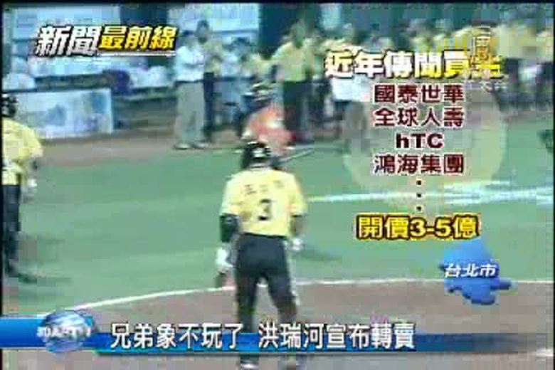 新聞一開始,先來帶您關心,成軍29年的兄弟象,確定要跟球迷說再見了,兄弟象隊董事長洪瑞河今天(19日)宣布,兄弟象不堪年年虧損的壓力,決定轉售,希望更大的企業能接手,如果今年沒辦法順利找到買家,兄弟明年至少還會再打一年。 //asset3.ntdtv.com.tw/public/uploads/video/2013/10/20/20131020-17835312.mp4 台灣要聞|兄弟象|洪瑞河|台灣職棒|台北2013-10-19 22:32:51