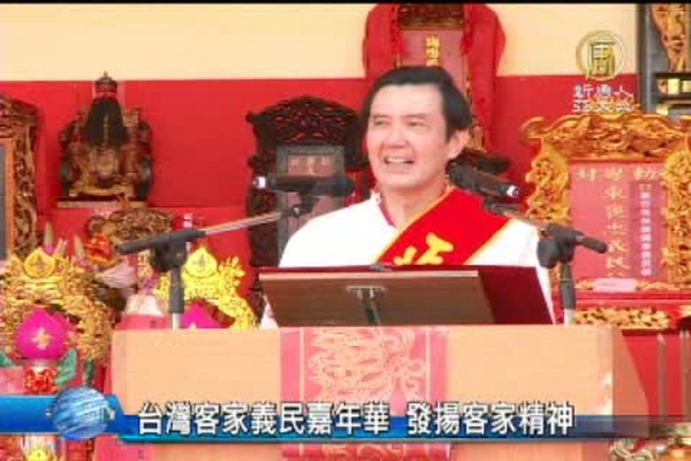 一年一度的客家義民嘉年華會在台北登場,現場超過176個挑擔隊伍、39個踩街團隊參與,十分熱鬧,總統馬英九率吳伯雄、郝龍斌以客家話向民眾問好,並表示政府將會致力推動客家文化,不過在活動現場也遇到了聲援大埔的民眾表達抗議,氣氛一度緊張。 //asset1.ntdtv.com.tw/public/uploads/video/2013/10/21/20131021-17848768.mp4 藝文看板|客家義民嘉年華|徐德馨|蘇文龍|台北2013-10-20 21:27:26