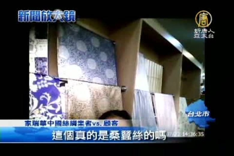 許多民眾到中國旅遊,愛買蠶絲被,不過有位蔡先生今年7月跟團赴廈門旅遊,旅行團安排到「家瑞華中國絲綢」購買蠶絲被,回來蓋了之後全身發癢起疹子,送檢才發現,黑心蠶絲被竟然沒有一條真蠶絲,但卻求償無門,立委批旅行社和黑心廠商勾結收回扣,研擬修法重罰。 //asset3.ntdtv.com.tw/public/uploads/video/2013/10/26/20131026-17930018.mp4 消費流行|中國旅遊|蠶絲被|廈門|黑心|旅行社收回扣2013-10-25 22:18:10