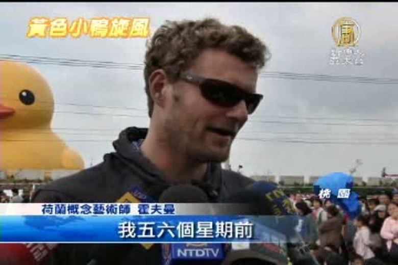 由荷蘭概念藝術師霍夫曼設計的黃色小鴨是現在最夯的話題,在高雄愛河上的光榮碼頭展出1 個月,總參觀人數逼近400萬,第二站移駕到桃園,預定26日在新屋後湖塘正式與民眾見面。 //asset3.ntdtv.com.tw/public/uploads/video/2013/10/26/20131026-17931736.mp4 台灣寫真|黃色小鴨|新屋|後湖塘|桃園2013-10-25 21:44:26