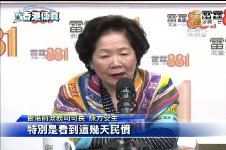 香港免費電視牌照風波引發全城激憤,繼陳日君樞機後,前政務司司長陳方安生日前出席一電臺節目時,以痛心氣憤形容今次香港電視發牌風波,並指事件衝擊梁振英的管治威信。 //asset2.ntdtv.com.tw/public/uploads/video/2013/10/28/20131028-17962563.mp4 真相中國|香港傳真|港視|陳方安生|梁振英|香港2013-10-27 21:02:32