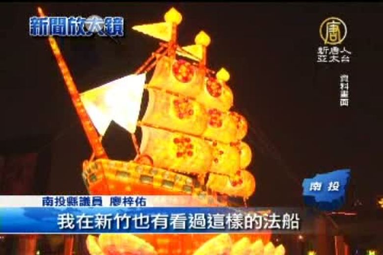 今年初,在新竹臺灣燈會,法輪功學員展出全長20公尺、高14公尺的巨型「法船」花燈,受到民眾的歡迎,不過明年,2014年的臺灣燈會,南投縣政府兩度駁回法船參展申請。南投市長、以及縣議員等政要希望透過協調,能讓「法船」花燈航進明年的臺灣燈會。 //asset3.ntdtv.com.tw/public/uploads/video/2013/10/30/20131030-17990692.mp4 台灣寫真|臺灣燈會|法船|花燈|法輪功|南投2013-10-29 21:48:25